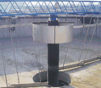 刮泥機,是一種排泥設(shè)備。組成部分:刮泥機由桁車、刮泥耙、撇渣板、驅(qū)動裝置和自控柜等到組成。分類:刮泥機主要有中心傳動刮泥機、周邊傳動刮泥機。中心傳動刮泥機主要由工作橋、傳動裝置、穩(wěn)流筒、傳動軸、刮臂、刮泥板等組成。該機設(shè)有橫跨池子的固定平臺,工作時其整機載荷都作用在工作橋中心;污水經(jīng)池中心穩(wěn)流筒均流到四周。隨著過流面積增大而流速降低,污水中的沉淀物沉淀于池底,刮泥機將沉淀的污泥刮集到中心集泥坑中,利用水壓將其從污泥管中排出。該機結(jié)構(gòu)簡單,傳動平穩(wěn),動力消耗低,刮泥效果好,是一種理想的排泥設(shè)備;周邊傳動刮泥機用于城市污水處理廠、自來水廠以及工業(yè)廢水處理中輻流式圓形沉淀池和濃縮池中,排除沉降在池底的污泥和撇除池面的浮渣。應(yīng)用領(lǐng)域:刮泥機主要應(yīng)用于鋼鐵、冶金、礦山、水處理等行業(yè)。