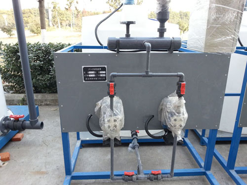 在水處理工程中加藥箱主要用于各種藥劑的攪拌、溶解、儲存,再通過計量泵或水射器將藥液投加到各投加點。 加藥箱外形分為方形和圓形,材質為聚乙烯(PE),通過滾塑技術一次成型,上部預設了計量泵及攪拌機的安裝位置,攪拌機、加藥箱、計量泵三合一,使用非常方便。